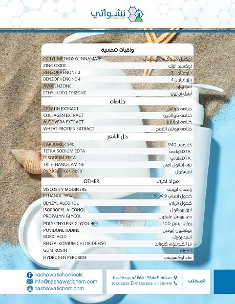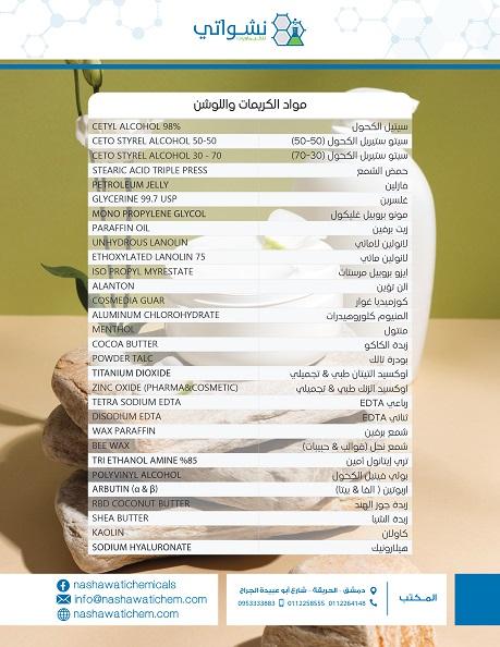 | الاختصاص | استيراد وتجارة المواد الاولية المستخدمة في الصناعات التجميلية والصيدلانية وصناعة المعقمات |