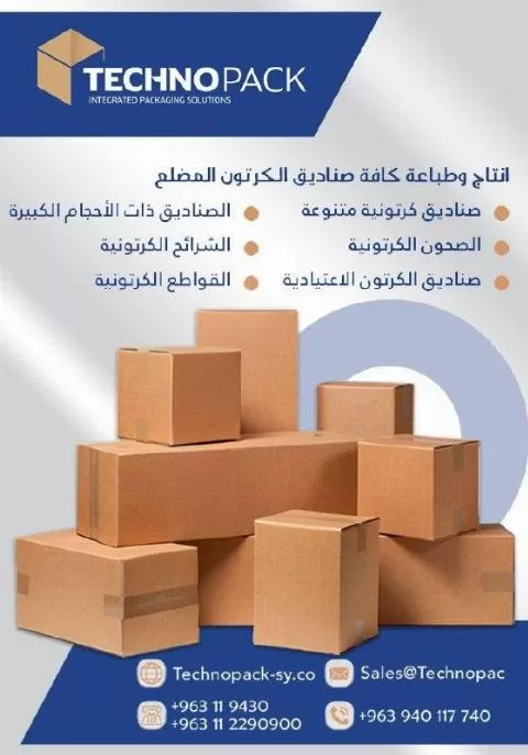 تكنوباك هي شركة رائدة في صناعة الكرتون المضلع في منطقة بلاد الشام بخبرة واسعة تمتد منذ عام 1984. تضم الشركة أكثر من 200 موظفاً من أصحاب الكفاءة والخبرة، وتعتمد على أحدث التقنيات والتجهيزات والمرافق المتطورة لتقدم حلول تغليف مبتكرة بجودة عالية وأسعار تنافسية وخدمات عملاء بمستوى عالمي.